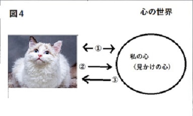 ここで問題になるのは、猫を前にしたときの「可愛いという思い」と「目の前の猫」との関係です。つまり、図4に示すように、「可愛いという思い」が、