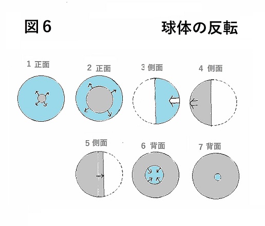3つ目の例として「私が考えている」という場合についても検討してみましょう。この場合は、前者の2つのケースとは異なり、高度な機能が関係します。例えば、伸縮自在のゴムで作られた球体に穴を1個開けて、その表裏をひっくり返す場面を想像してみてください。多分「見かけの心」の中で球体のイメージが思い浮かび、その穴を広げていってくるりと反転させることができると思います。「簡単なことだよ」と思われることでしょう。しかし、それを分かるように表現するとなると、図6に示すように案外難しいことがわかります。